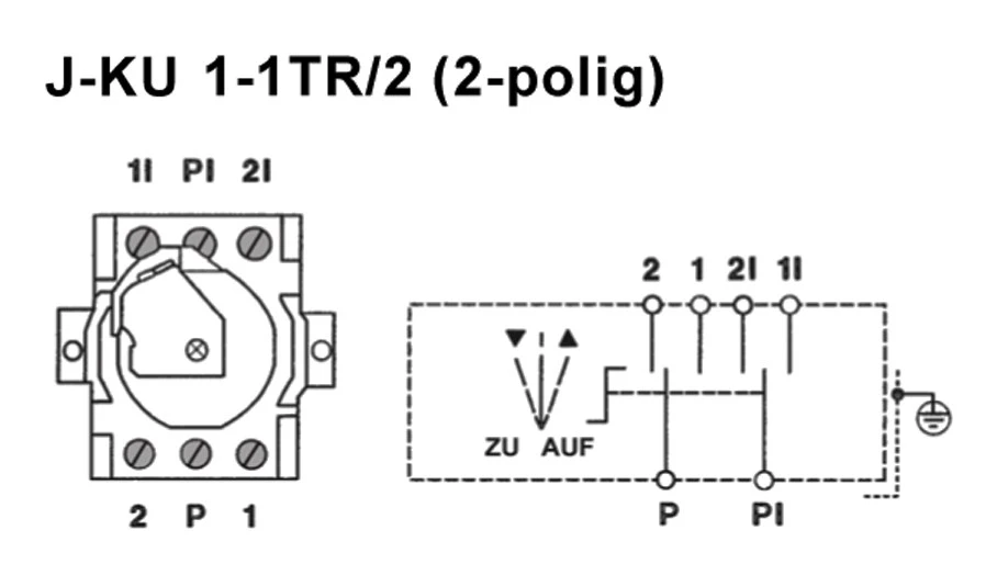 J-KU 1-1TR/2 UP Schlüsselschalter AB = tastend / AUF = rastend, 2-polig AB/AUF