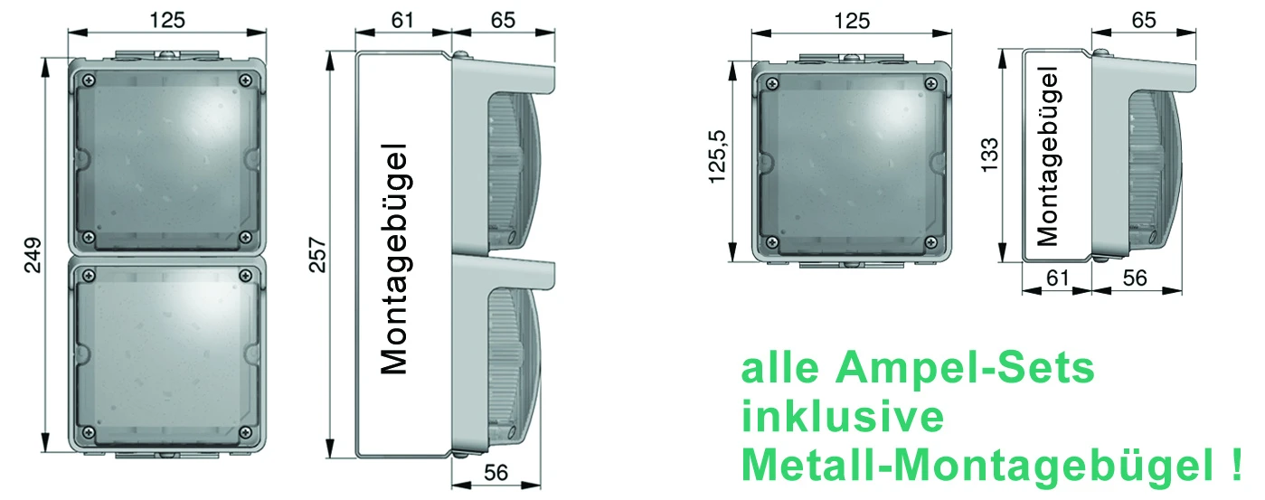 - Ampel über den Montagebügel um 180° schwenkbar