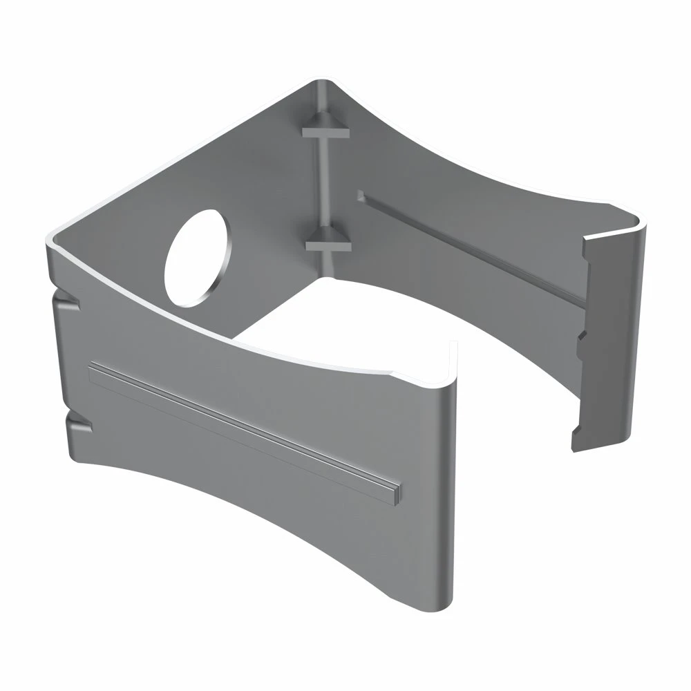 Befestigungsklammer zur Montage von Jalousiemotoren Serie DMJ an Jalousie-Oberschienen bzw. U-Profilen. Die Befestigungsklammer kann von oben (nach oben geöffnetes U-Profil) oder von unten (nach unten geöffnetes U-Profil) eingerastet werden.
