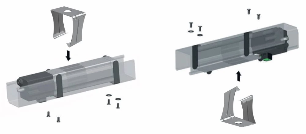 Befestigungsklammer zur Montage von Jalousiemotoren Serie DMJ an Jalousie-Oberschienen bzw. U-Profilen