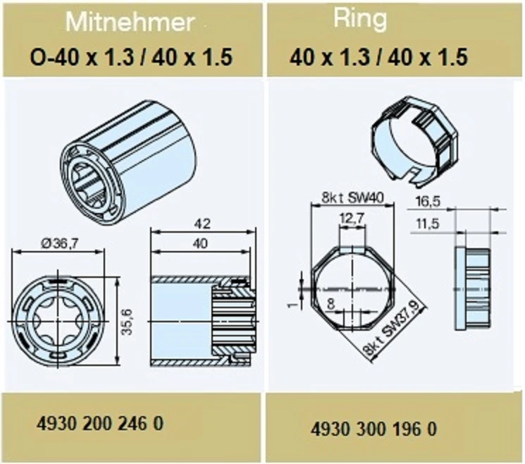 Mitnehmer O-40 x 1,3 / 40 x 1,5  Art-Nr. 4930 200 246 0 - GTIN-Nr. : 4251852910917