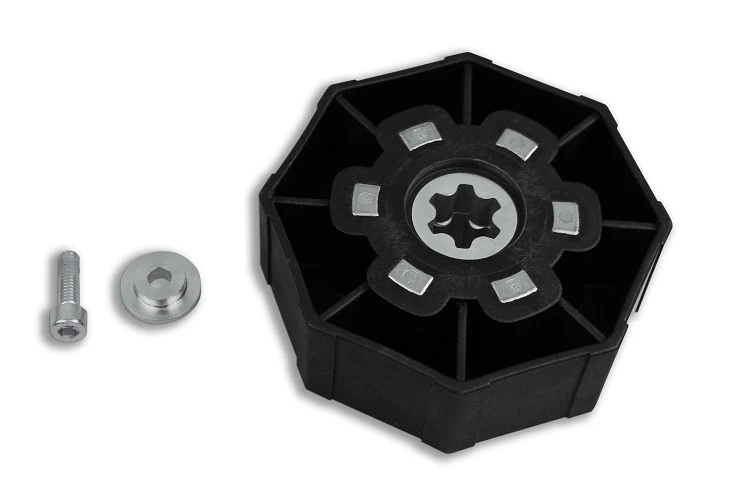 Adapterset bestehend aus Mitnehmer und Ring aus Kunststoff .