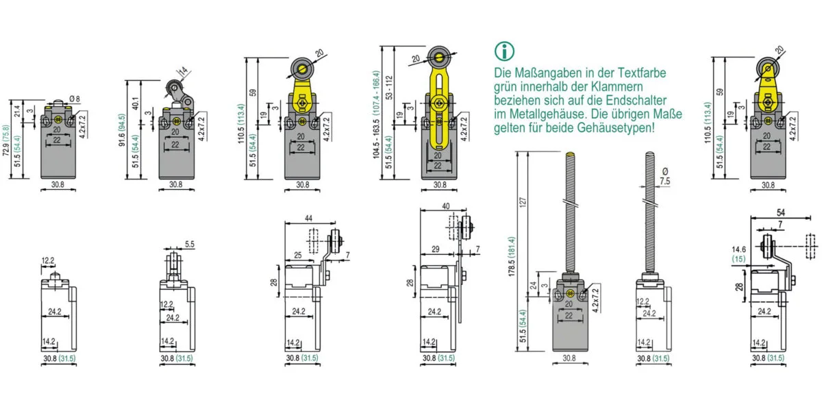 WTS - Endschalter mit Stößel Metall Sprungkontakt 1S + 1Ö, Wassergeschützt - Schutzart IP 67