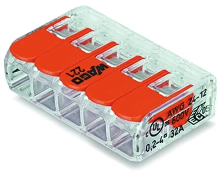 WAGO 221 - Verbindungsklemme mit Hebelklemmverschlüssen, 5-Leiter