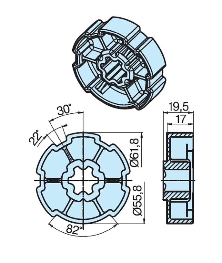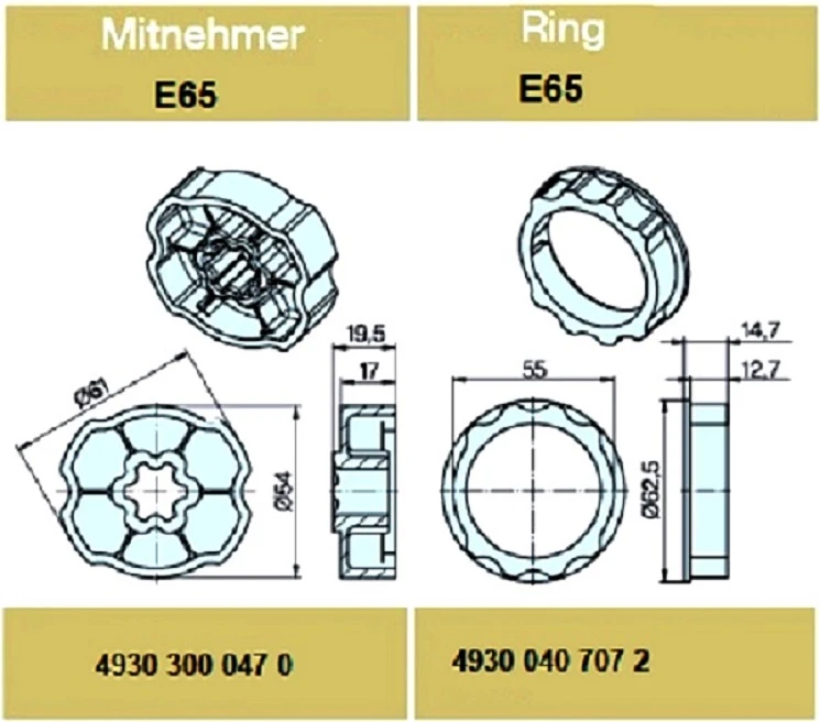 Adapterset für Profilwelle E65,für Rohrmotoren Becker Baureihe P und R Serie