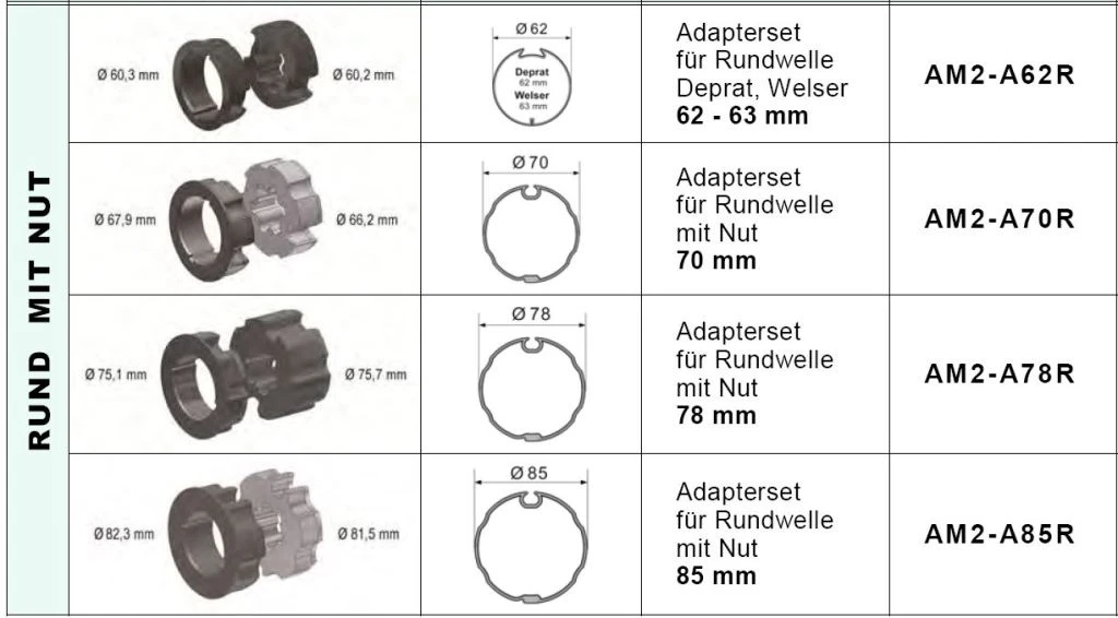 Produkt : Adapterset für Rundwelle mit Nut 78 mm