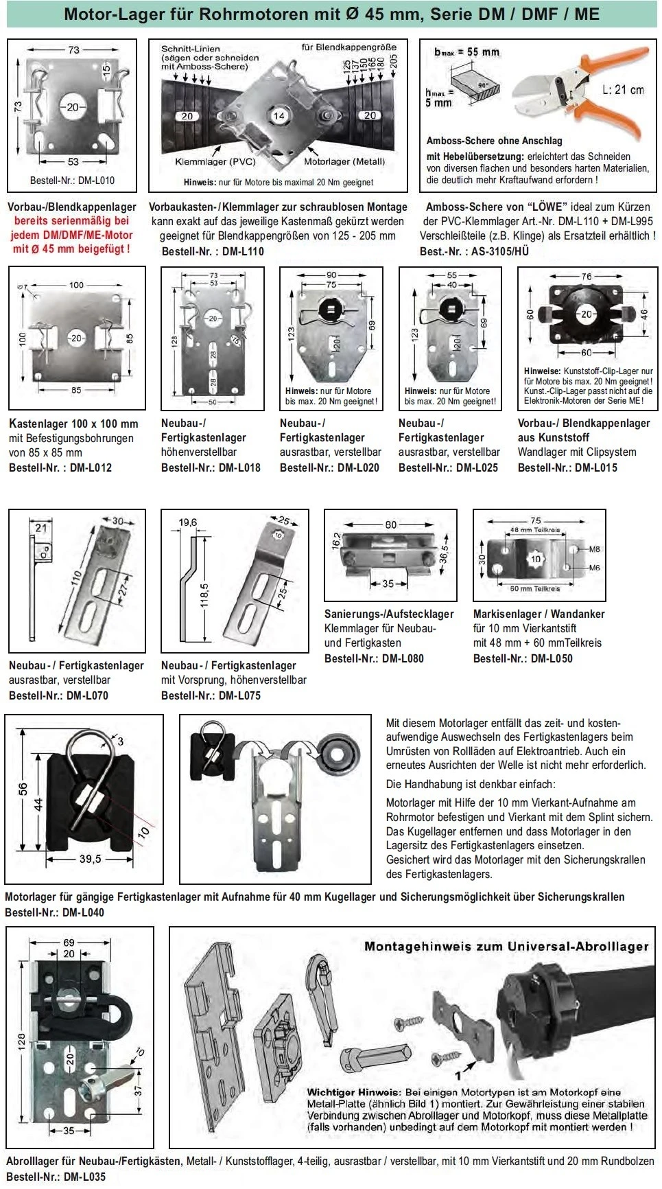 WTS - Motor-Lager DM-L012 für Rohrmotoren mit Ø 45 mm, Serie DM / DMF / ME