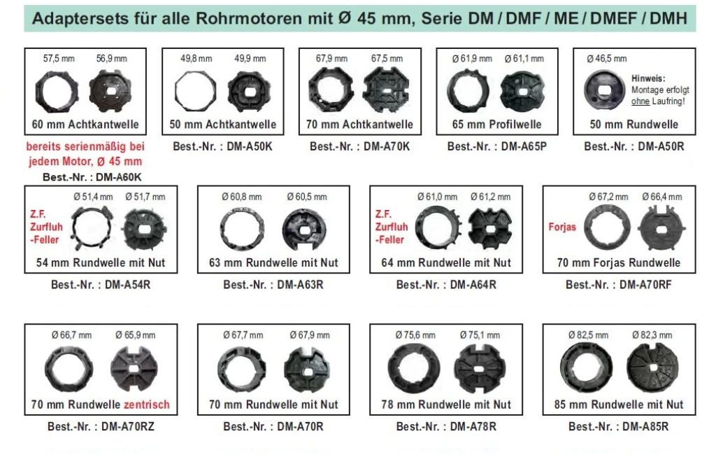 WTS - Adapterset DM-A50K : 50 mm Achtkantwelle für alle Rohrmotoren Ø 45 mm, Serie