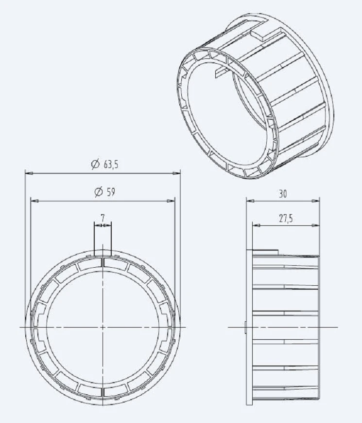Adapterset bestehend aus Mitnehmer und Ring + Zwischenring 63x1,5 aus Kunststoff .