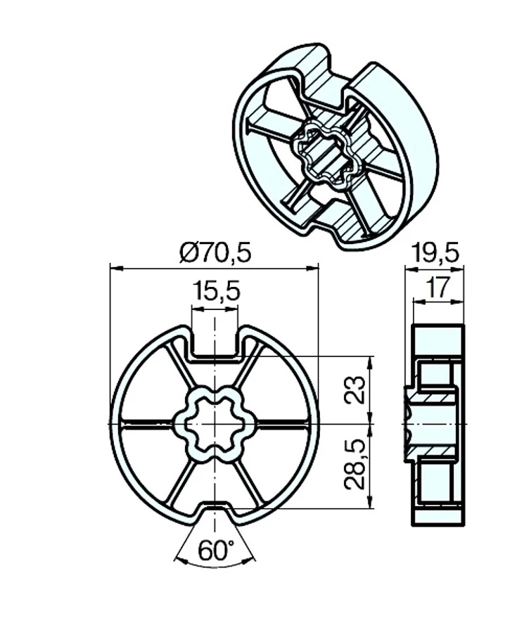 Adapterset für Nutwelle DW74N für Rohrmotoren Becker Baureihe R Serie