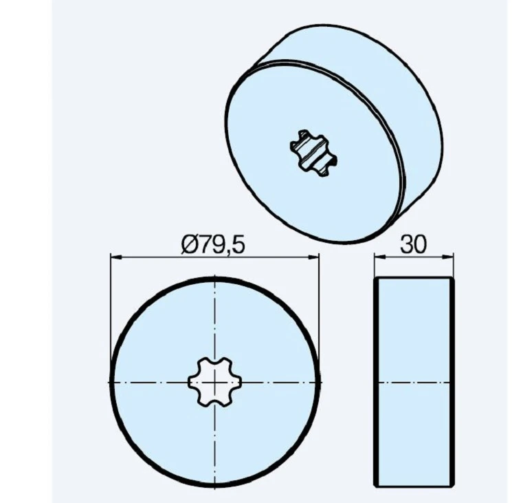Bestehend aus Mitnehmer und Ring aus Guss/Kunststoff.