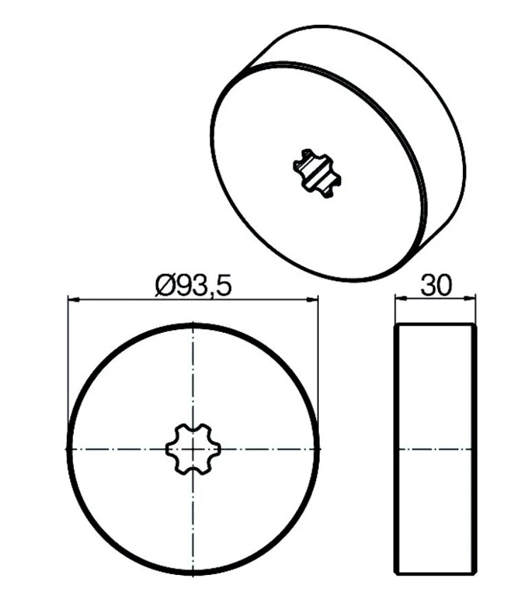 Bestehend aus Mitnehmer und Ring aus Guss / Kunststoff .