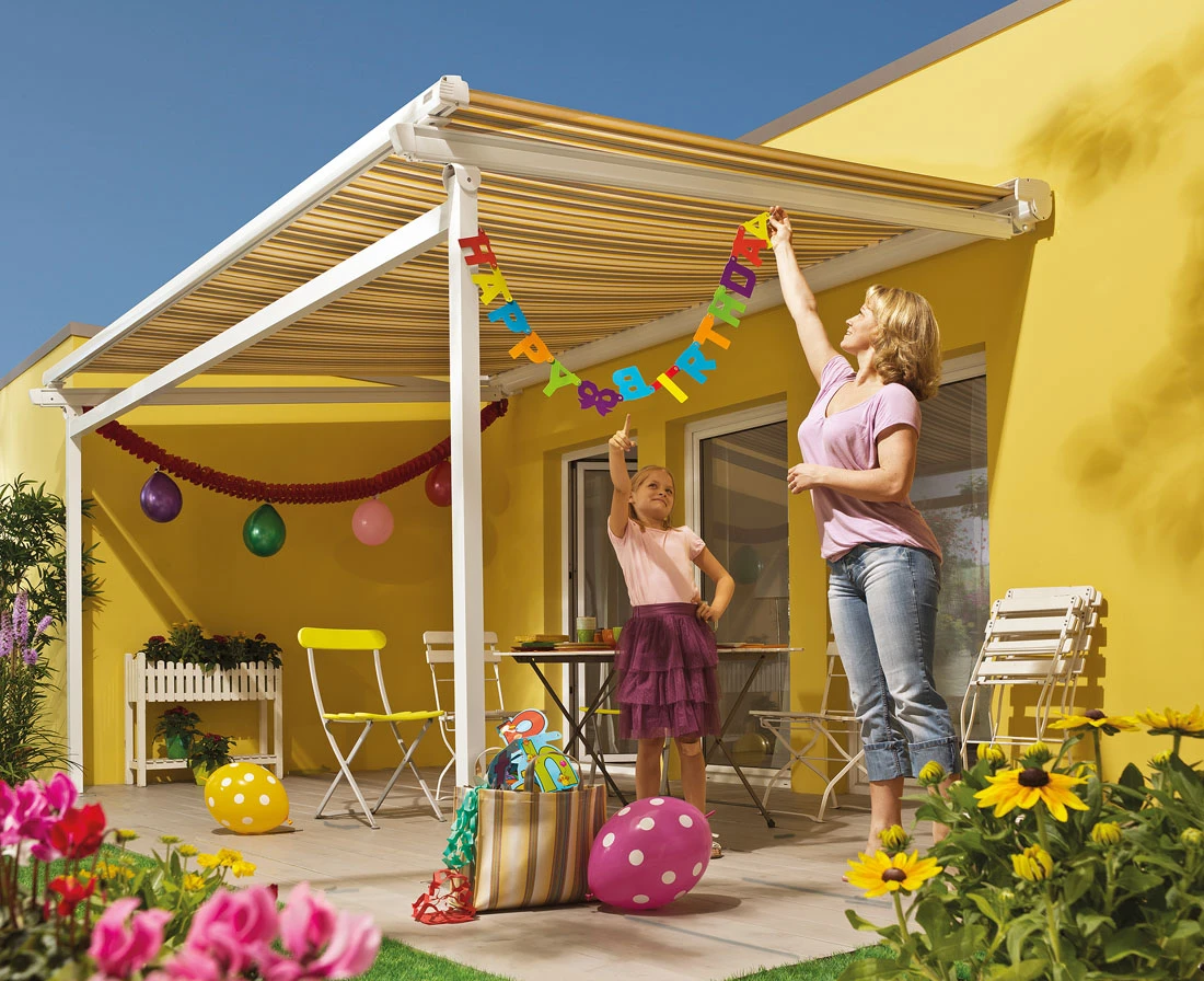 Die Markise CAPRI ist ein außenliegender Sonnenschutz für vorhandene Wintergärten oder Glasdächer und verhindert so übermäßigen Sonneneinfall und besonders bei Wintergärten das Aufheizen des Raumes.