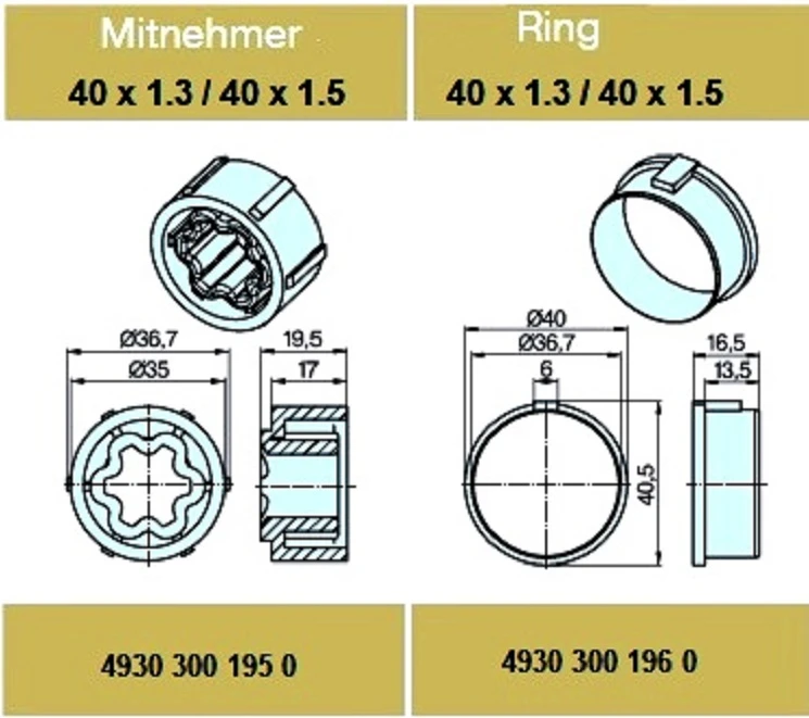 Mitnehmer : 40 x 1.3 / 40 x 1.5 - Art-Nr. : .4930 300 195 0 - GTIN-Nr. : 4251852911082