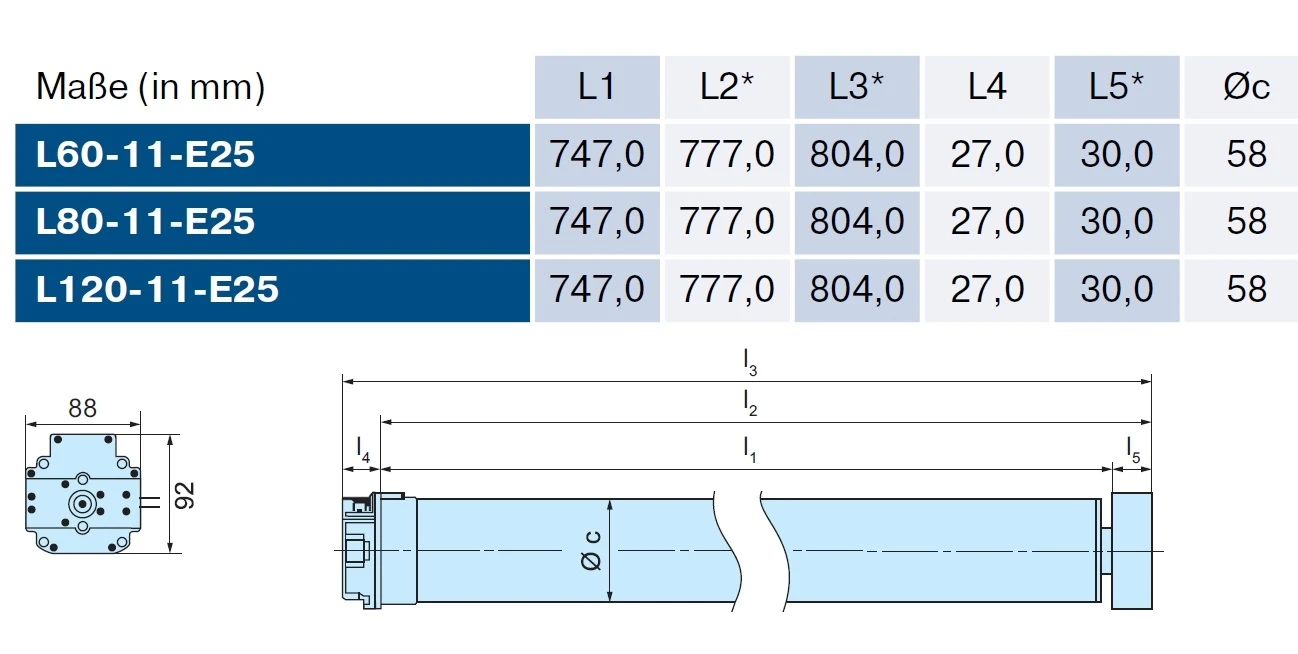 * Mitnehmerbreite von S60L (4930 300 466 0) , bei Wahl eines anderen Mitnehmers ändern sich die Maße l2, l3 und l5