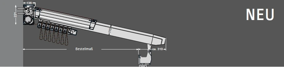 3 Führungschienen je Anlage: ab 601 cm Breite oder 501 cm Ausfall