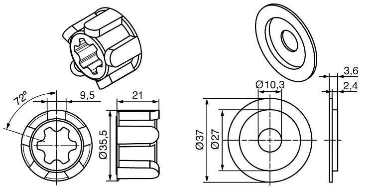Anschlussteil - Sternadapter ohne Befestigungsmaterial aus Kunststoff - für Becker Rohrmotoren R7 bis R40