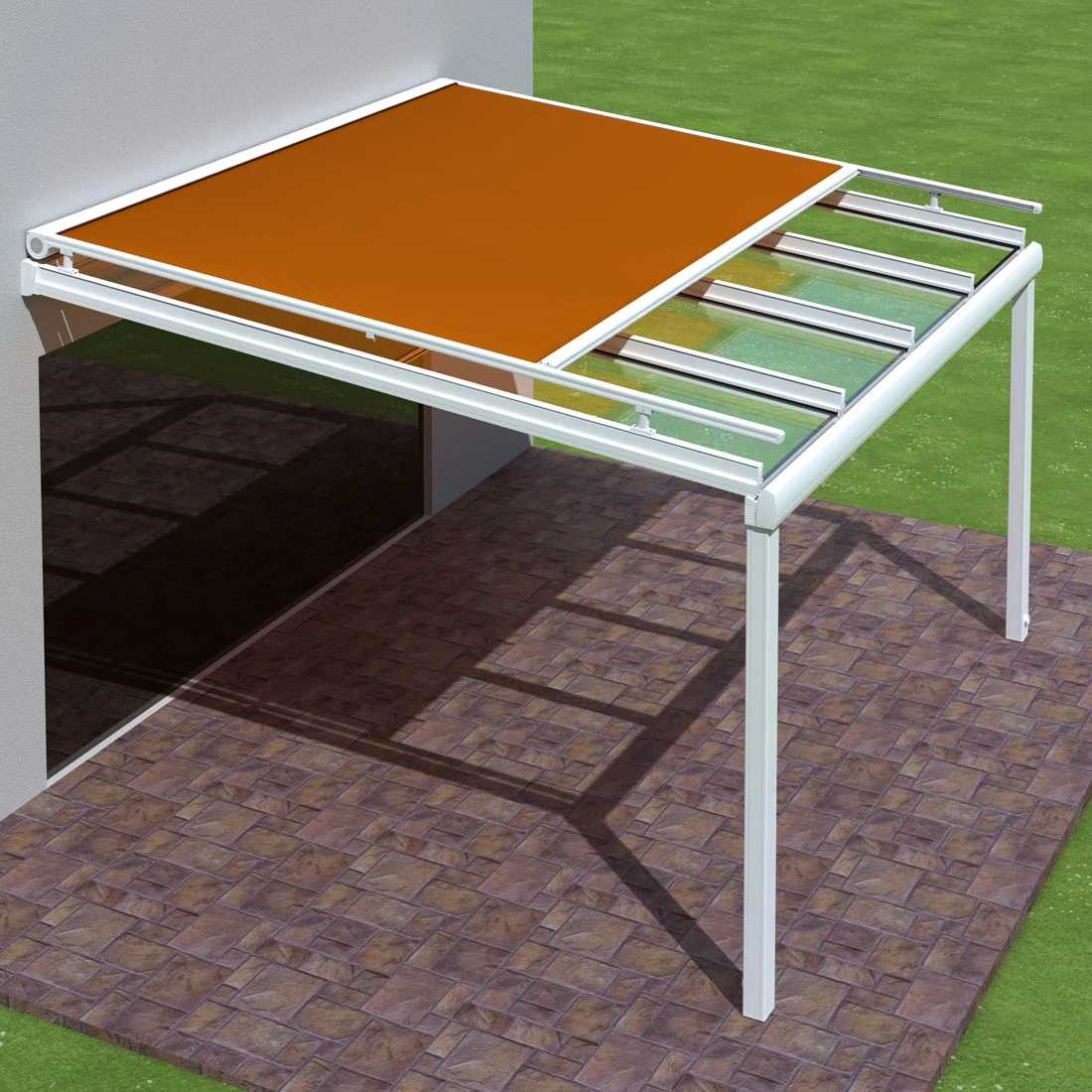 Markise zur nachträglichen Unterglas- oder Aufglas-Montage am vorhandenen Glasdach oder Wintergarten.